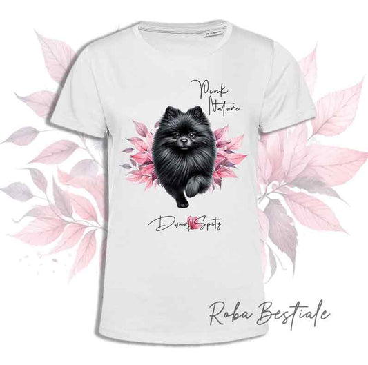 T-Shirt PINK NATURE - SPITZ TEDESCO NANO - POMERANIA Nero - Uomo o Donna - dalla XS alla 5XL
