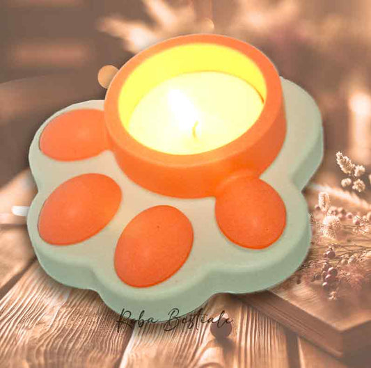 Porta Tea Light ZAMPINA - Base Bianco Panna & dettagli Arancio Fluo - in Jesmonite - 9x9 cm