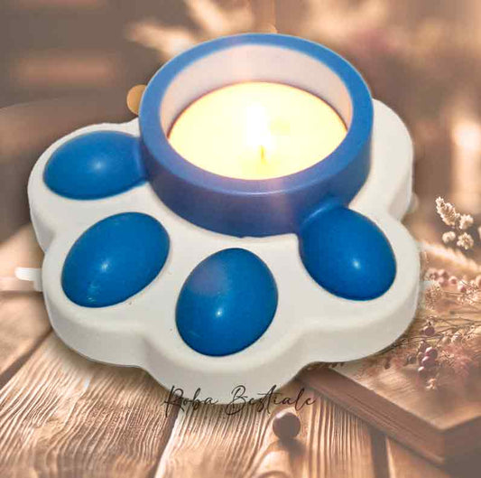 Porta Tea Light ZAMPINA - Base Bianco Panna & dettagli Blue Royal - in Jesmonite - 9x9 cm