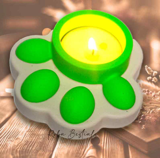 Porta Tea Light ZAMPINA - Base Bianco Panna & dettagli Verde Fluo - in Jesmonite - 9x9 cm