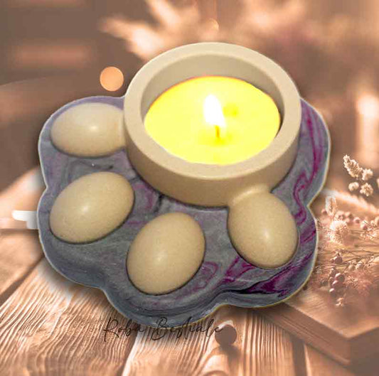 Porta Tea Light ZAMPINA - Base Grigio Marmorizzato Viola & dettagli Crema - in Jesmonite - 9x9 cm