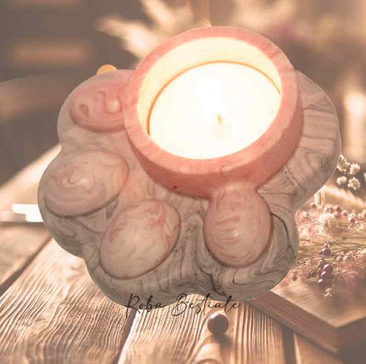 Porta Tea Light ZAMPINA - Marmorizzata GRIGIO & ROSA - in Jesmonite