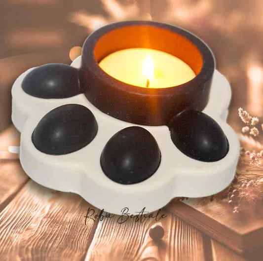 Porta Tea Light ZAMPINA - Base Bianco Panna & dettagli Black - in Jesmonite - 9x9 cm