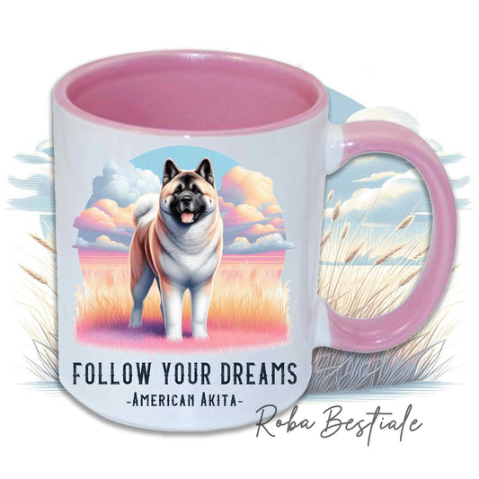Tazza QUOTES "DREAM" - AKITA AMERICANO Zibellino - In Ceramica, con manico e interno in diversi colori - 330 ml