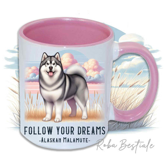 Tazza QUOTES "DREAM" - ALASKAN MALAMUTE Grigio - In Ceramica, con manico e interno in diversi colori - 330 ml