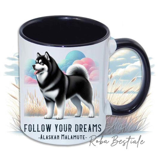 Tazza QUOTES "DREAM" - ALASKAN MALAMUTE Nero - In Ceramica, con manico e interno in diversi colori - 330 ml
