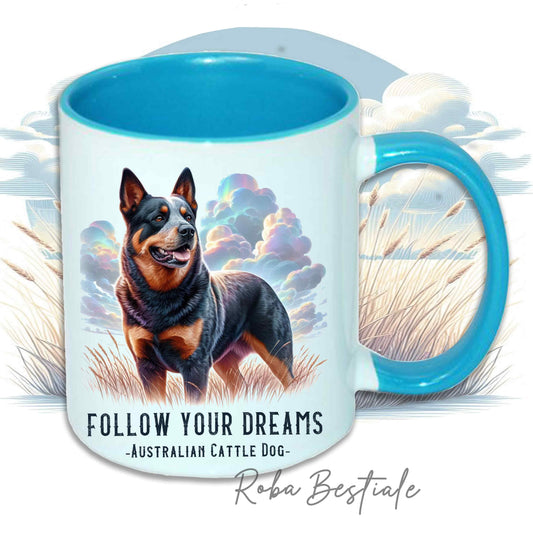 Tazza QUOTES "DREAM" - AUSTRALIAN CATTLE DOG Blue - In Ceramica, con manico e interno in diversi colori - 330 ml