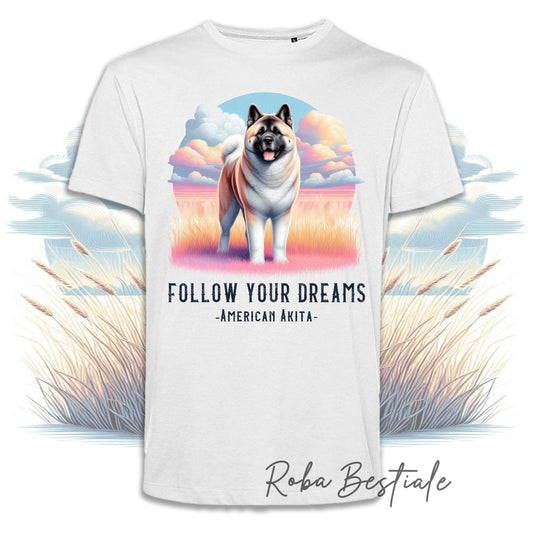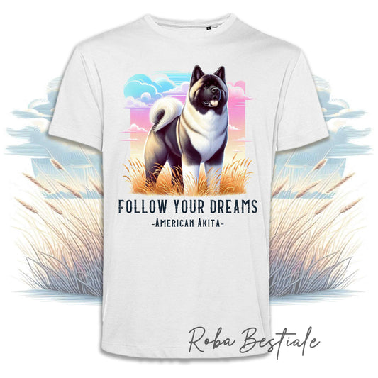 T-Shirt QUOTES "DREAM" - AKITA AMERICANO Zibellino - Bianca, Uomo o Donna - dalla XS alla 5XL
