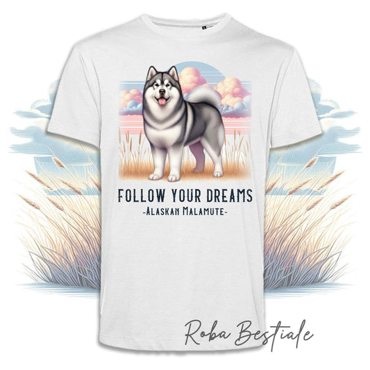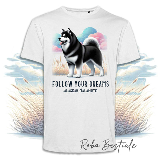 T-Shirt QUOTES "DREAM" - ALASKAN MALAMUTE Nero - Bianca, Uomo o Donna - dalla XS alla 5XL