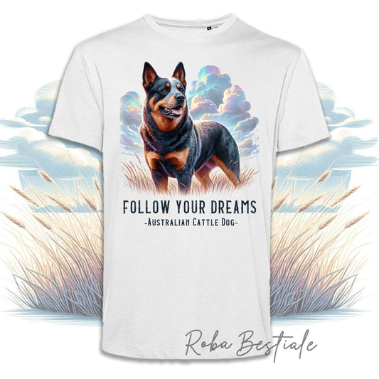 T-Shirt QUOTES "DREAM" - AUSTRALIAN CATTLE DOG Blue - Bianca, Uomo o Donna - dalla XS alla 5XL