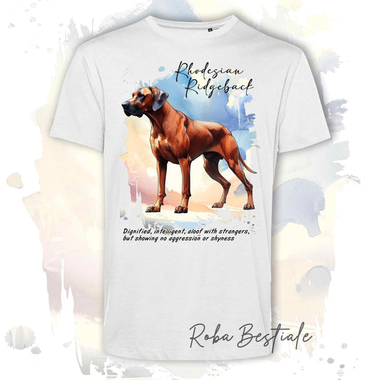 T-Shirt BEHAVIOR - RHODESIAN RIDGEBACK - Standard FCI - 100% Cotone, Bianca, Uomo o Donna - dalla XS alla 5XL