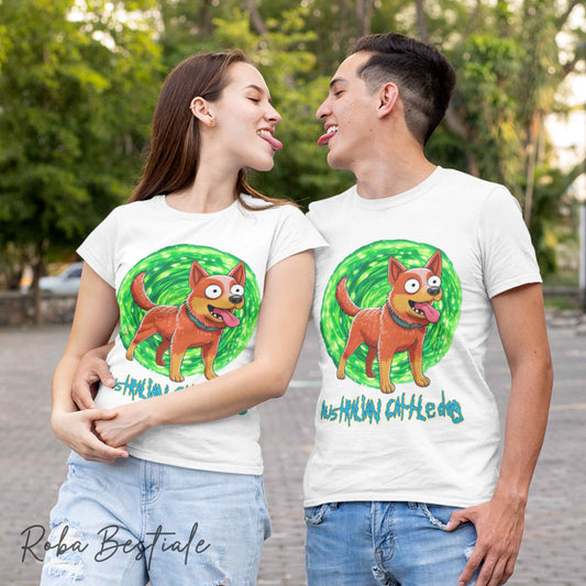 T-Shirt RICK & MORTY - AUSTRALIAN CATTLE DOG Red - Bianca, dalla XS alla 5XL