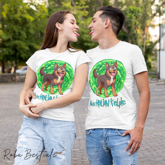T-Shirt RICK & MORTY - AUSTRALIAN KELPIE Black & Tan - Bianca, dalla XS alla 5XL