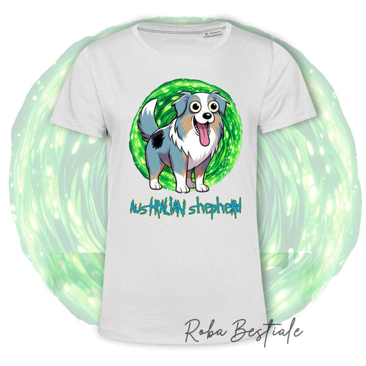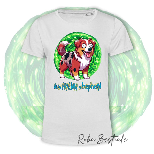 T-Shirt RICK & MORTY - AUSTRALIAN SHEPHERD Blue Merle - Bianca, dalla XS alla 5XL