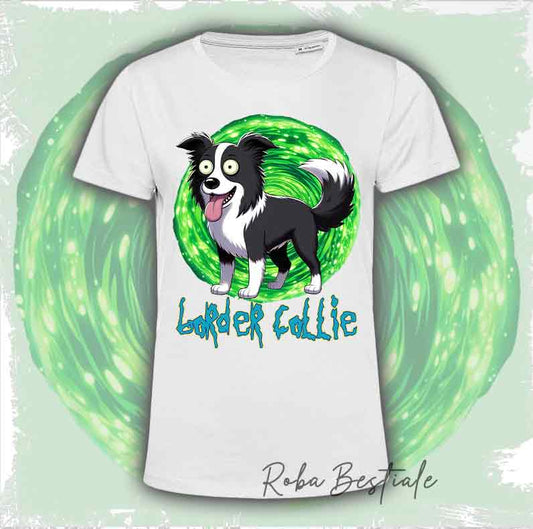 T-Shirt RICK & MORTY - BORDER COLLIE Bianco & Nero