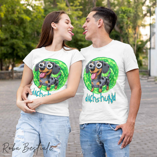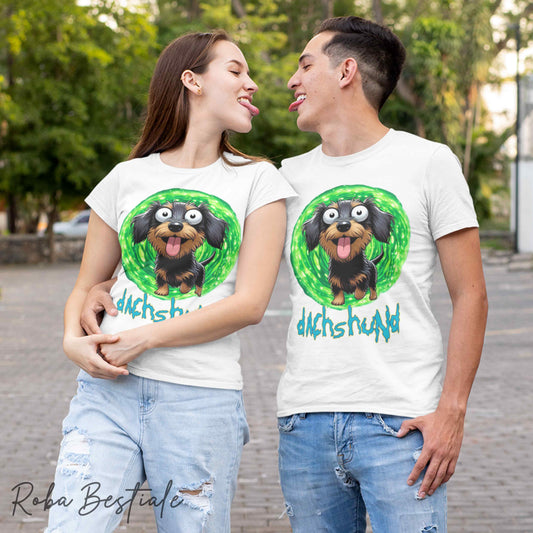 T-Shirt RICK & MORTY - BASSOTTO TEDESCO a Pelo Corto - Nero Focato - Bianca, dalla XS alla 5XL