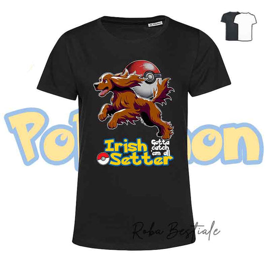 T-Shirt POKEMON - SETTER IRLANDESE Rosso - Uomo o Donna, Bianca o Nera - dalla XS alla 5XL