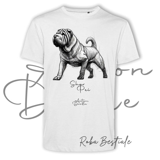 T-Shirt ACTION DOODLE - SHAR PEI - 100% Cotone, Bianca, Uomo o Donna - dalla XS alla 5XL