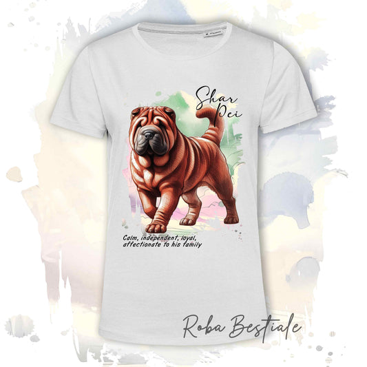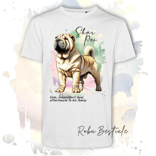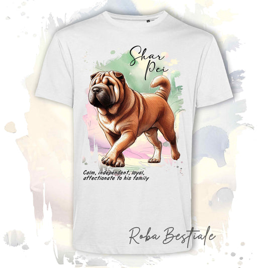 T-Shirt BEHAVIOR - SHAR PEI Fulvo - Standard FCI - 100% Cotone, Bianca, Uomo o Donna - dalla XS alla 5XL