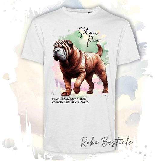 T-Shirt BEHAVIOR - SHAR PEI Marrone - Standard FCI - 100% Cotone, Bianca, Uomo o Donna - dalla XS alla 5XL