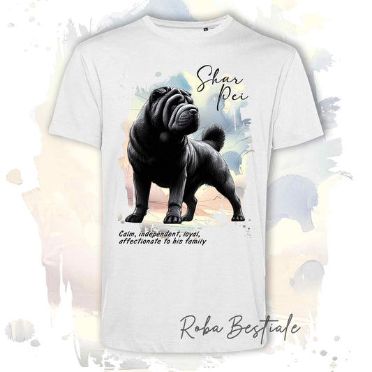 T-Shirt BEHAVIOR - SHAR PEI Nero - Standard FCI - 100% Cotone, Bianca, Uomo o Donna - dalla XS alla 5XL