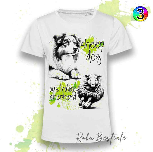 T-Shirt FLASHY SHEEPDOG - AUSTRALIAN SHEPHERD - Scritta Olografica Cangiante!