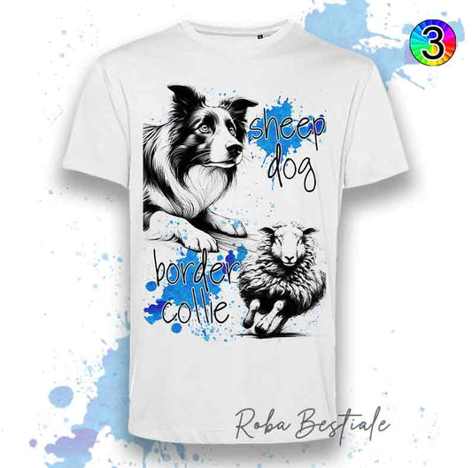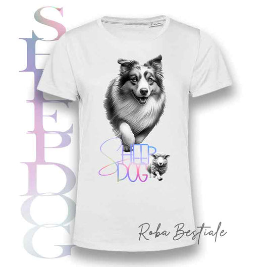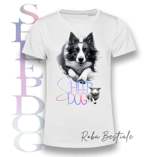 T-Shirt FLASHY SHEEPDOG - BORDER COLLIE Bianco & Nero - Scritta Olografica Cangiante!