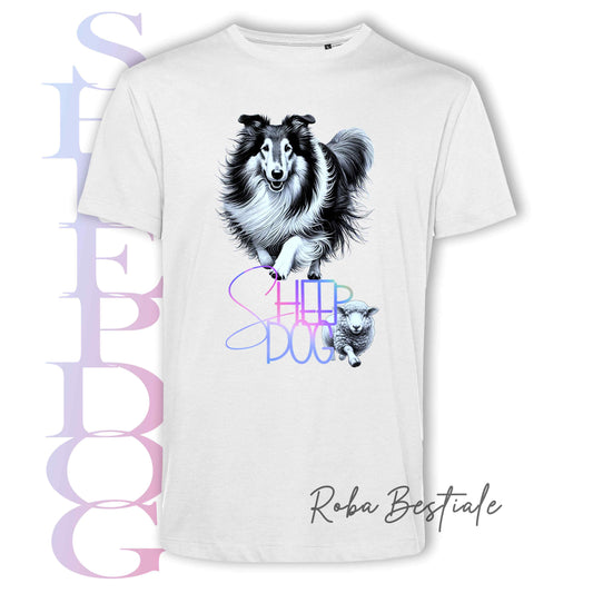 T-Shirt FLASHY SHEEPDOG - CANE DA PASTORE SCOZZESE a Pelo Lungo - Scritta Olografica Cangiante!