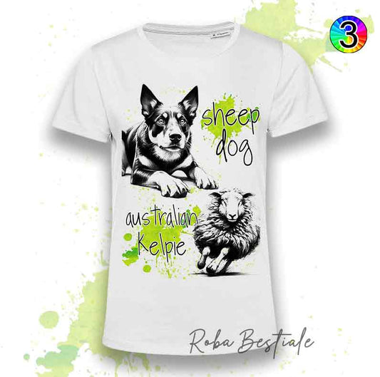 T-Shirt VINTAGE SHEEPDOG - AUSTRALIAN KELPIE Black Tricolor - Design "BOY" o "GIRL"