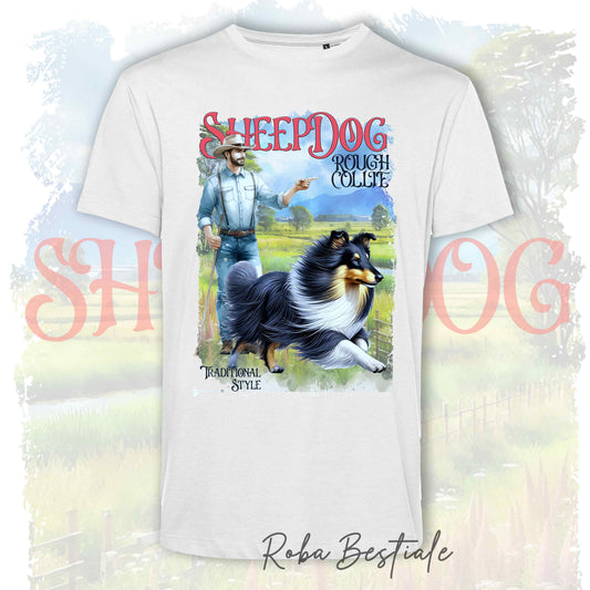 T-Shirt VINTAGE SHEEPDOG - CANE DA PASTORE SCOZZESE a Pelo Lungo, Tricolor - Design "BOY" o "GIRL"