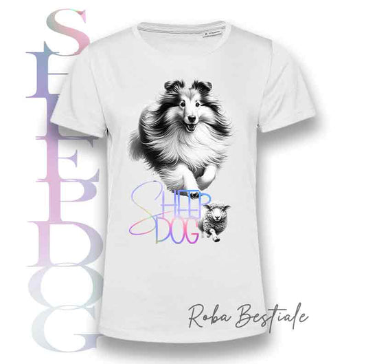 T-Shirt FLASHY SHEEPDOG - SHETLAND SHEEPDOG - Scritta Olografica Cangiante!
