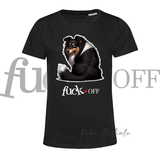 T-Shirt F**K OFF - SHETLAND SHEEPDOG Black Tricolor - Bianca o Nera - Uomo o Donna - dalla XS alla 5XL