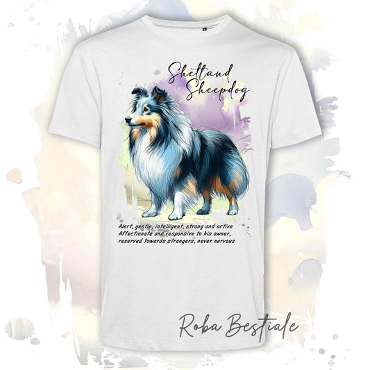 T-Shirt BEHAVIOR - SHETLAND SHEEPDOG Blue Merle - Standard FCI - 100% Cotone, Bianca, Uomo o Donna - dalla XS alla 5XL