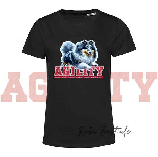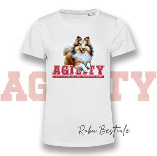 T-Shirt AGILITY PATH - SHETLAND SHEEPDOG Fulvo Zibellino - Bianca o Nera - Uomo o Donna - dalla XS alla 5XL