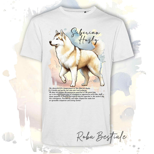T-Shirt BEHAVIOR - SIBERIAN HUSKY Zibellino - Standard FCI - 100% Cotone, Bianca, Uomo o Donna - dalla XS alla 5XL