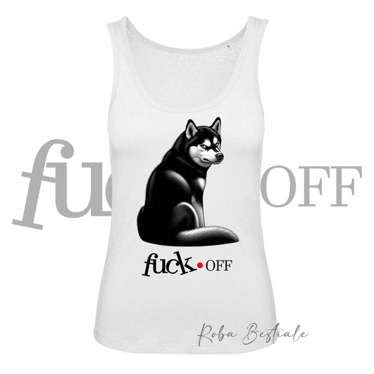 Canotta F**K OFF - SIBERIAN HUSKY Nero - Da Uomo o da Donna, Bianca o Nera - 100% Cotone - dalla XS alla 3XL