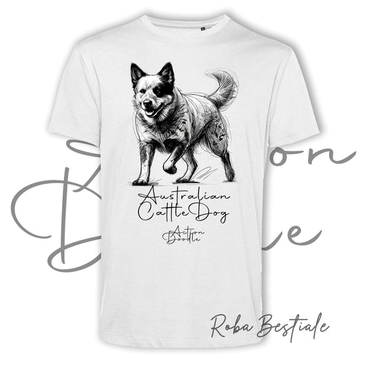 T-Shirt ACTION DOODLE - AUSTRALIAN CATTLE DOG 1 - 100% Cotone, Bianca, Uomo o Donna - dalla XS alla 5XL