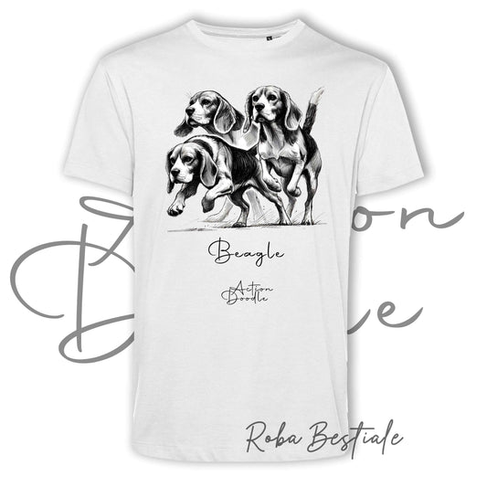T-Shirt ACTION DOODLE - BEAGLE 1 - 100% Cotone, Bianca, Uomo o Donna - dalla XS alla 5XL