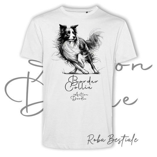 T-Shirt ACTION DOODLE - BORDER COLLIE Bianco e Nero 1 - 100% Cotone, Bianca, Uomo o Donna - dalla XS alla 5XL