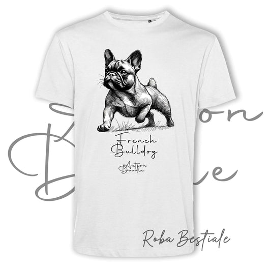T-Shirt ACTION DOODLE - BOULEDOGUE FRANCAIS Fulvo 1 - 100% Cotone, Bianca, Uomo o Donna - dalla XS alla 5XL