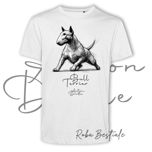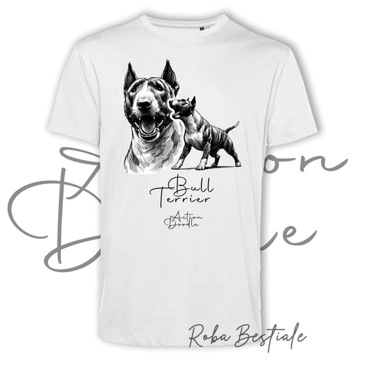 T-Shirt ACTION DOODLE - BULL TERRIER Bianco 1 - 100% Cotone, Bianca, Uomo o Donna - dalla XS alla 5XL