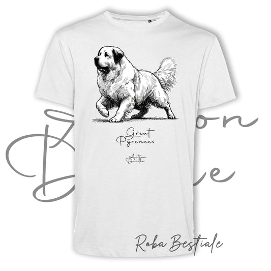 T-Shirt ACTION DOODLE - CANE DA MONTAGNA DEI PIRENEI 1 - 100% Cotone, Bianca, Uomo o Donna - dalla XS alla 5XL