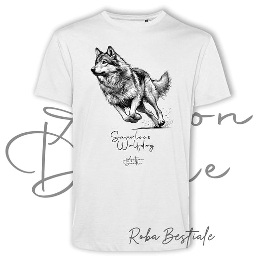T-Shirt ACTION DOODLE - CANE LUPO DI SAARLOOS 1 - 100% Cotone, Bianca, Uomo o Donna - dalla XS alla 5XL