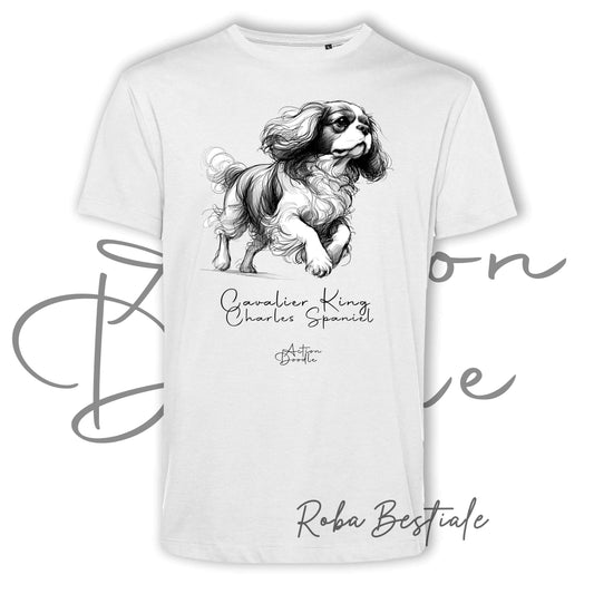 T-Shirt ACTION DOODLE - CAVALIER KING CHARLES SPANIEL 1 - 100% Cotone, Bianca, Uomo o Donna - dalla XS alla 5XL
