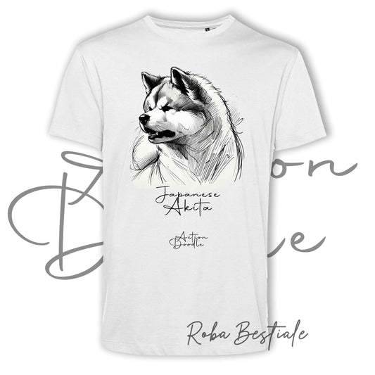 T-Shirt ACTION DOODLE - AKITA INU 1 - 100% Cotone, Bianca, Uomo o Donna - dalla XS alla 5XL