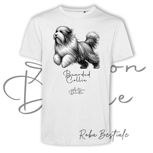 T-Shirt ACTION DOODLE - BEARDED COLLIE 1 - 100% Cotone, Bianca, Uomo o Donna - dalla XS alla 5XL