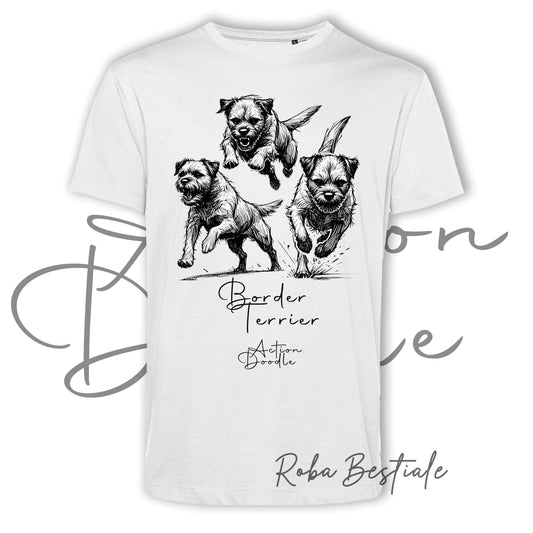 T-Shirt ACTION DOODLE - BORDER TERRIER 1 - 100% Cotone, Bianca, Uomo o Donna - dalla XS alla 5XL
