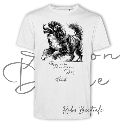 T-Shirt ACTION DOODLE - BOVARO DEL BERNESE 1 - 100% Cotone, Bianca, Uomo o Donna - dalla XS alla 5XL