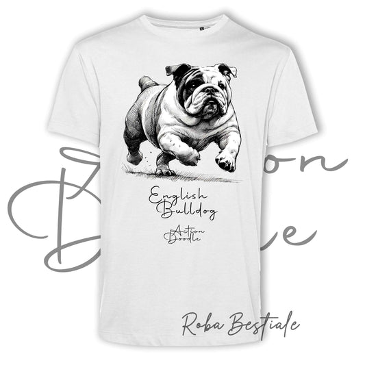 T-Shirt ACTION DOODLE - BULLDOG INGLESE 1 - 100% Cotone, Bianca, Uomo o Donna - dalla XS alla 5XL