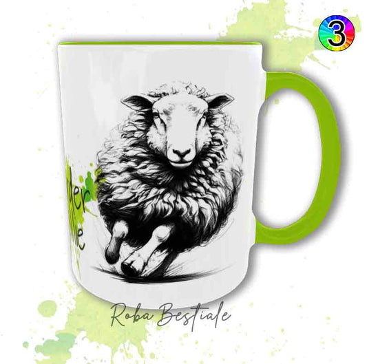 Tazza PANTA REI asd - In Ceramica, con manico e interno colorato - Nero, Celeste o Rosa - 330 ml